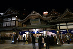 で、千と千尋の神隠しの元ネタの一部としても知られる道後温泉本館に行きました。ちょうど着いたのが18時前で振鷺閣(櫓のような場所)の障子が開いてました。
