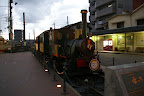疲れている祖母をのぞく家族4人で道後温泉へ伊予鉄市内線で。